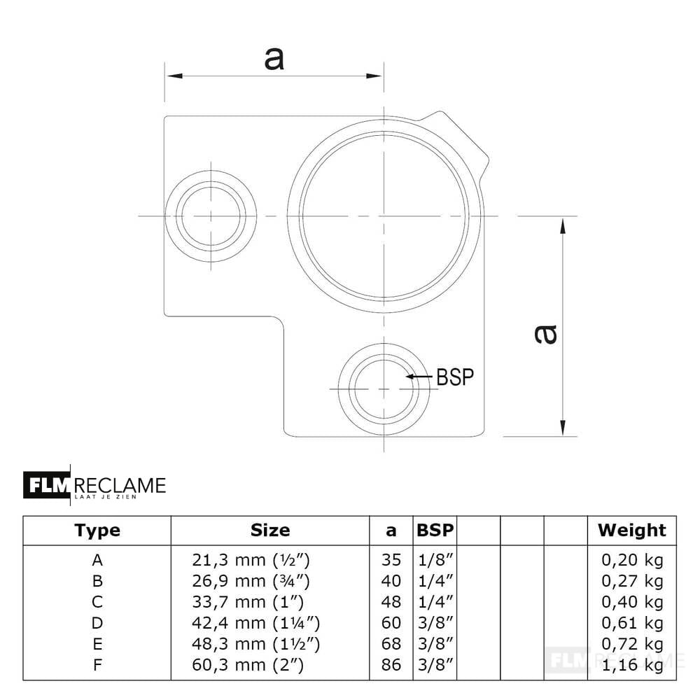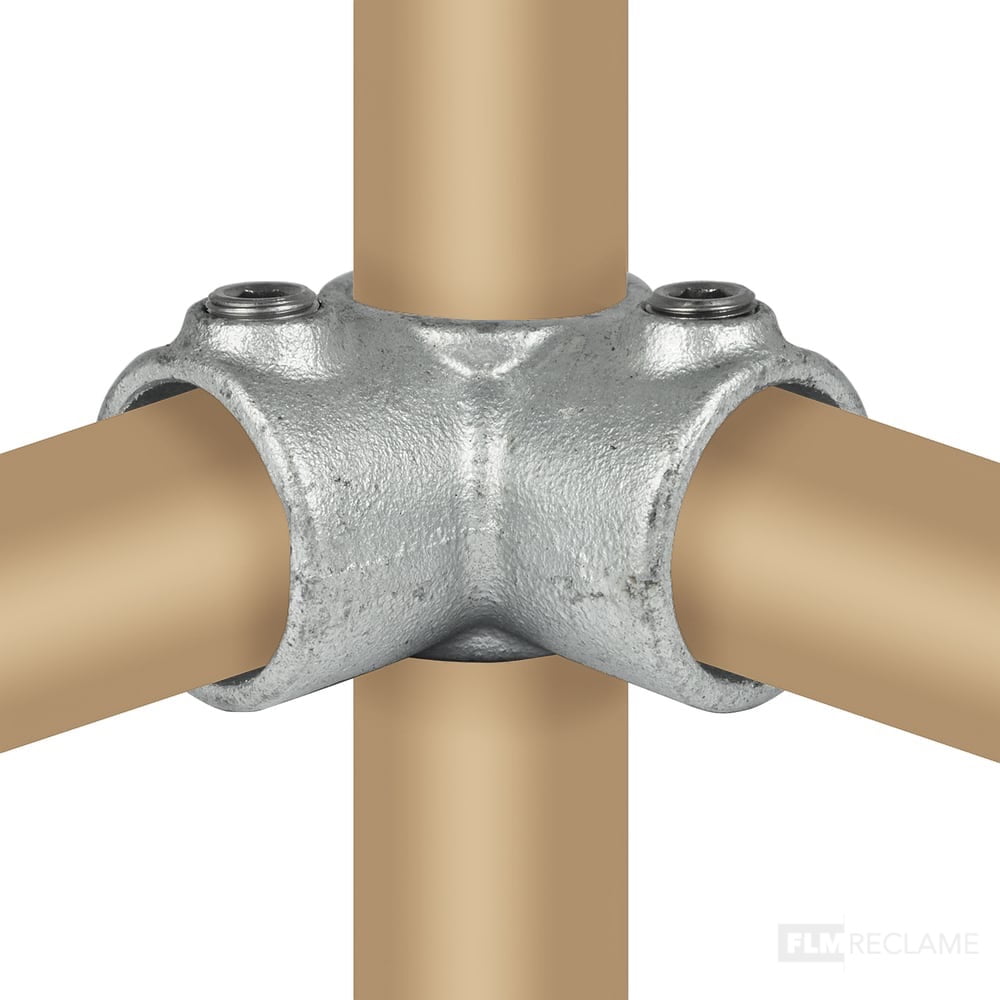 Hoekstuk doorlopende staander 90°. Hoekverbinding (90°), waarbij de verticale buis door de klem loopt.
